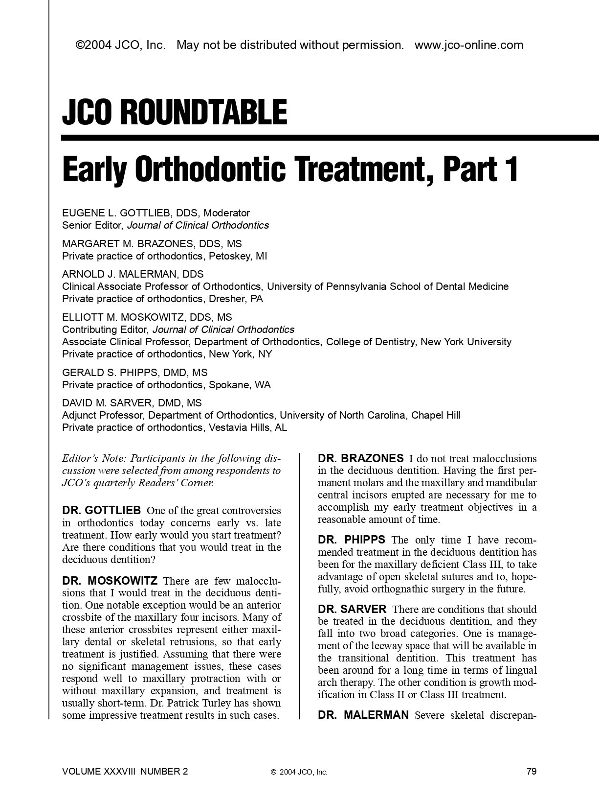 Title: JCO Roundtable: Early Orthodontic Treatment, Part 1