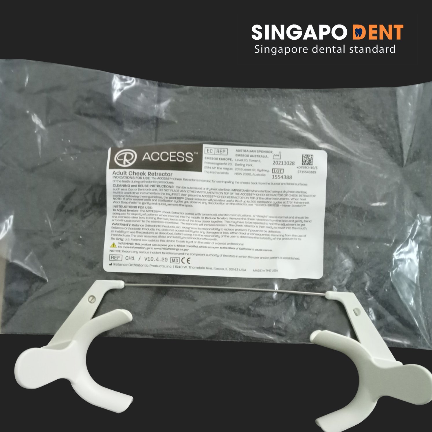 The ACCESS™ Cheek Retractor is designed to retract the cheeks from the buccal and lingual surfaces of teeth during orthodontic procedures.