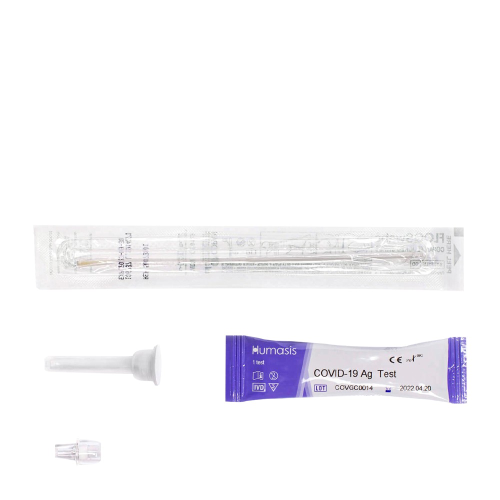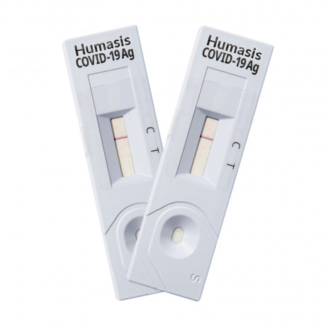 The Humasis COVID-19 Ag Test is a rapid in-vitro immunochromatographic assay for the qualitative detection of SARS-CoV-2 nucleocapsid protein antigen in nasopharyngeal swab specimens from individuals suspected of COVID-19. This rapid antigen test allows quick screening and identification of suspected SARS-CoV-2 cases in the community. It can be performed at home with high accuracy. Positive or negative results will determine the need for confirmatory testing.