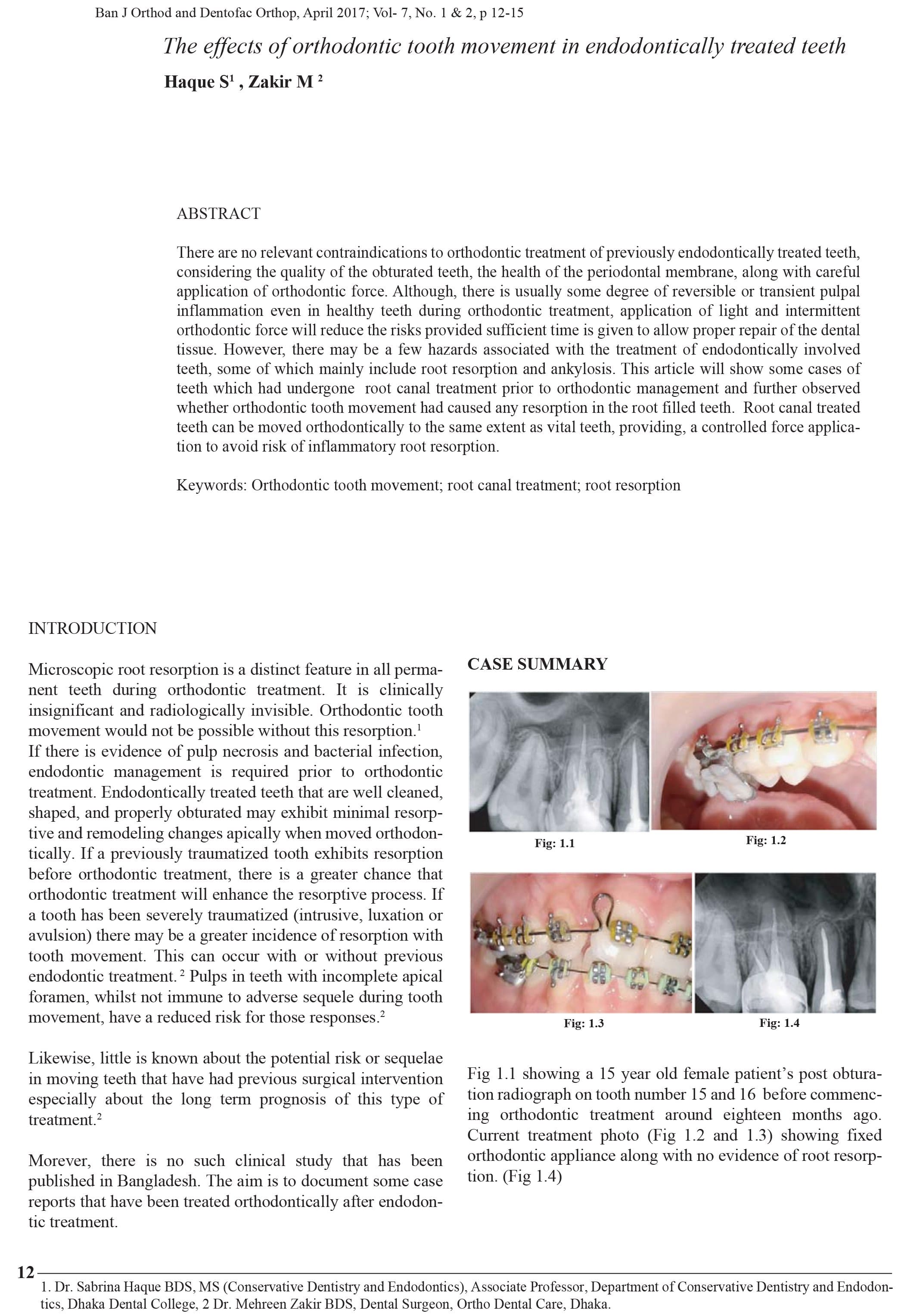 Title: The Effects of Orthodontic Tooth Movement in Endodontically Treated Teeth