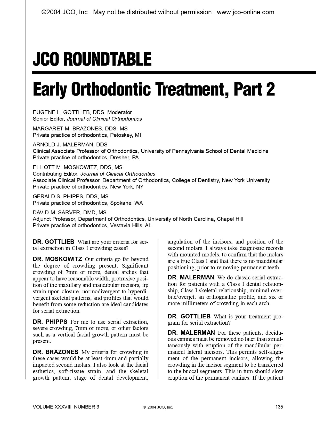 Title: JCO Roundtable: Early Orthodontic Treatment, Part 2