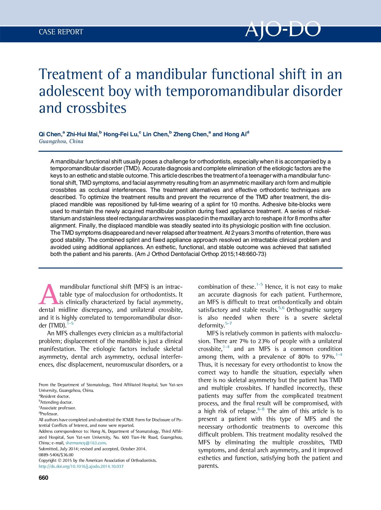 Title: Treatment of a Mandibular Functional Shift in an Adolescent Boy with Temporomandibular Disorder and CrossbitesVietnamese Version: Điều trị lệch chức năng hàm dưới ở một thiếu niên nam có rối loạn khớp thái dương hàm và cắn ngượcTranslators: Dr. Hoàng Việt – Dr. Thu Anh