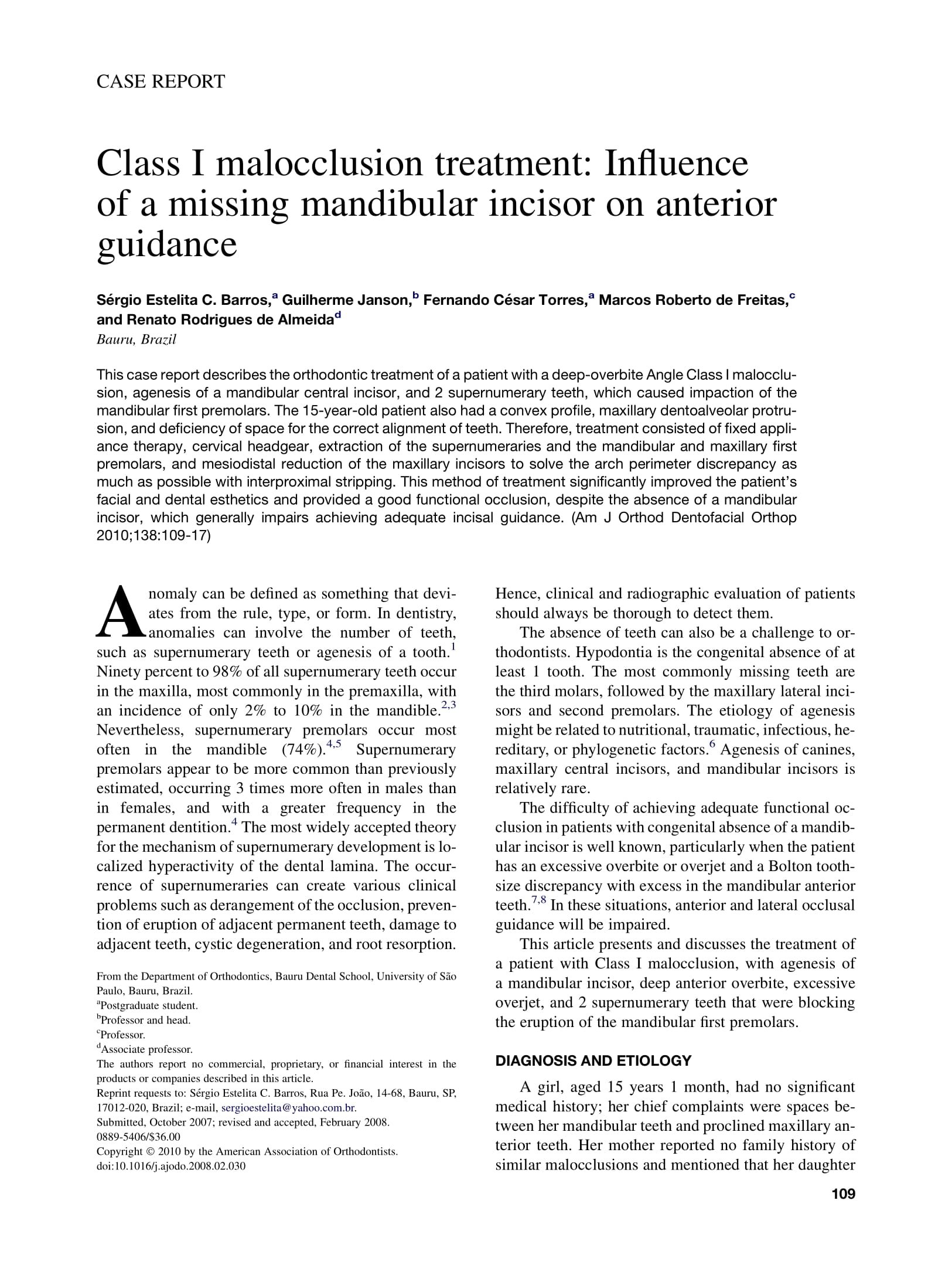 Title: Class I Malocclusion Treatment: Influence of a Missing Mandibular Incisor on Anterior Guidance