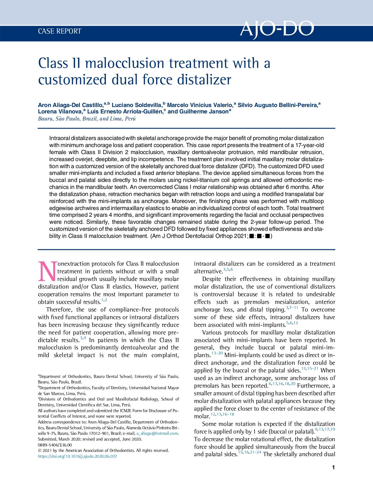 Title: Class II Malocclusion Treatment with a Customized Dual Force Distalizer