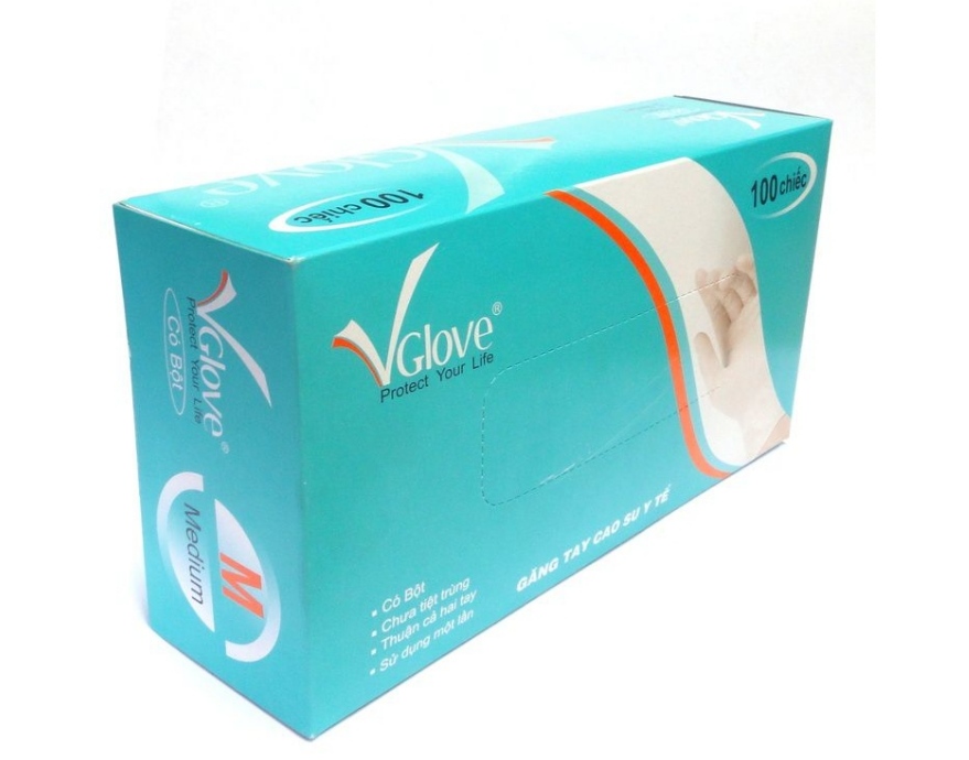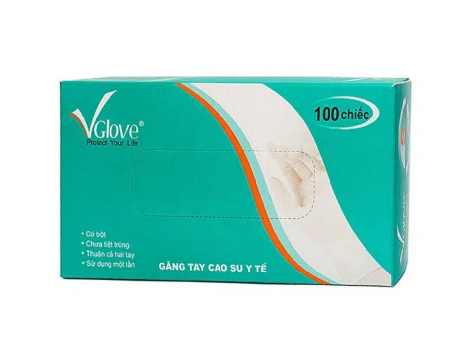 PRODUCT DESCRIPTION Brand: VGlove Country of Origin: Vietnam Packaging: 1 box × 100 gloves (50 pairs) Material: 100% natural rubber latex