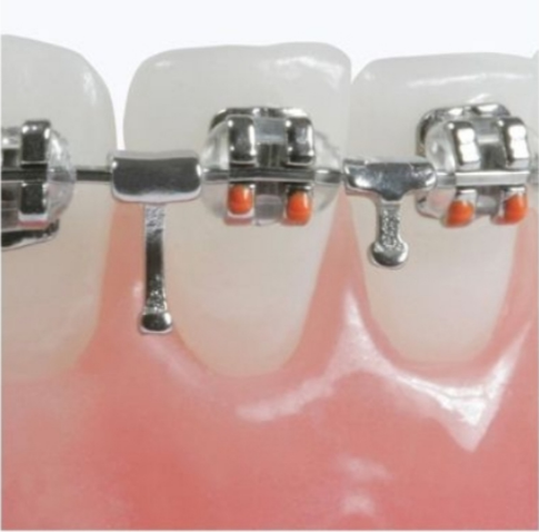 Versatile hook suitable for multiple functions, such as anchoring, closing extraction spaces, and interarch elastic application for bite correction. Compatible with wires sized .018″ to .022″.