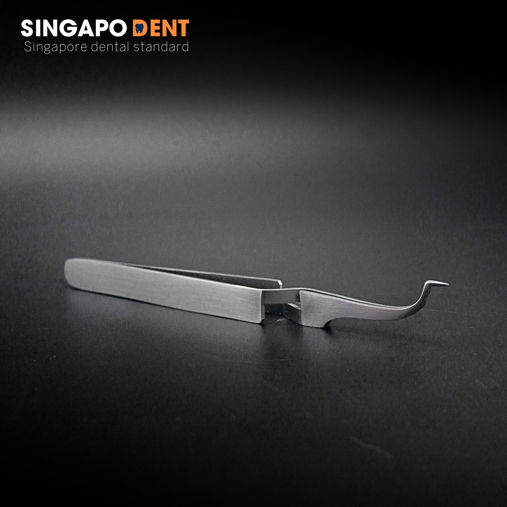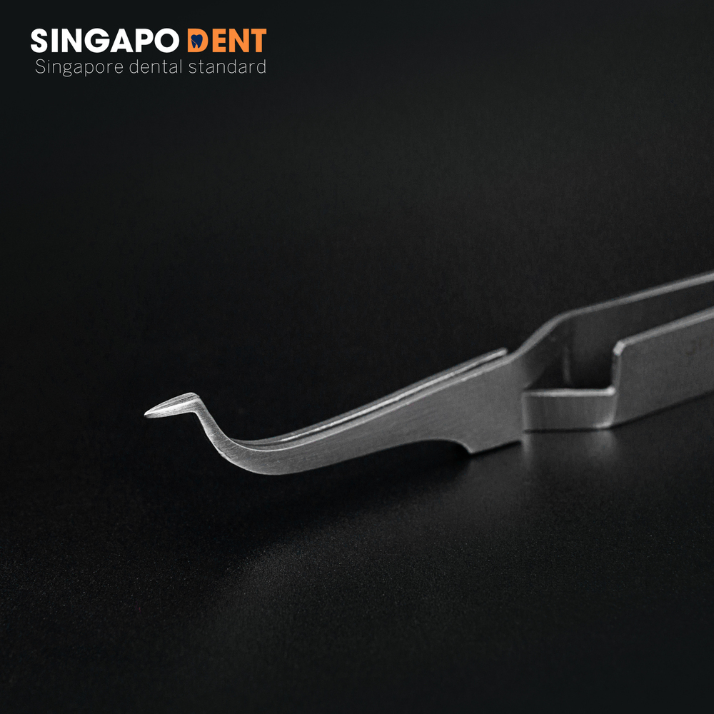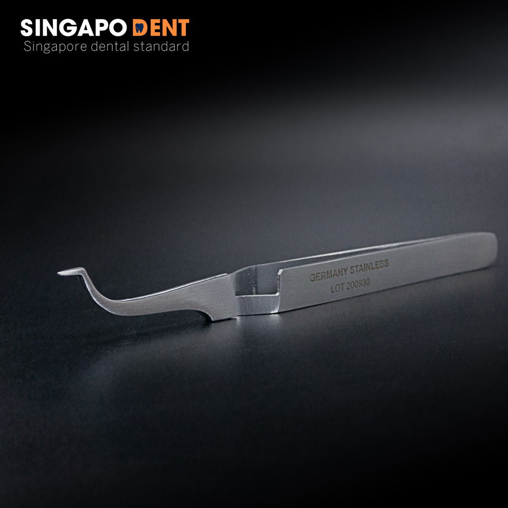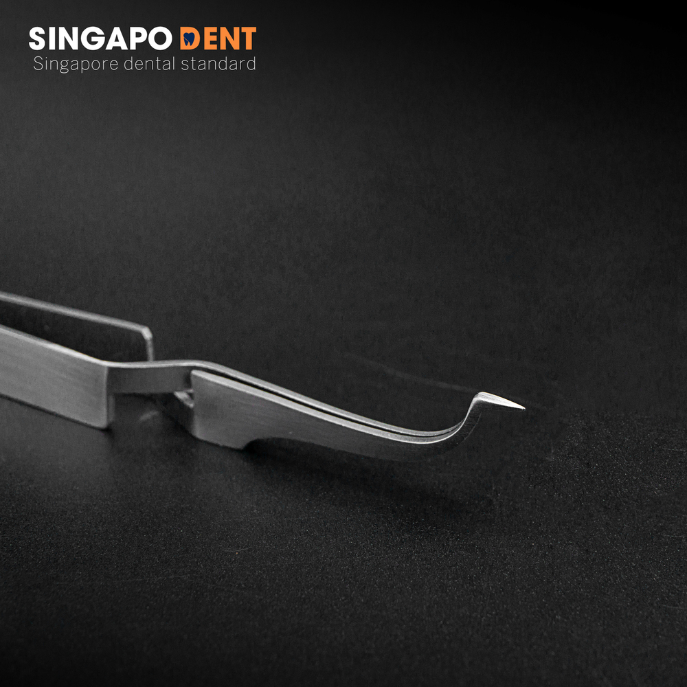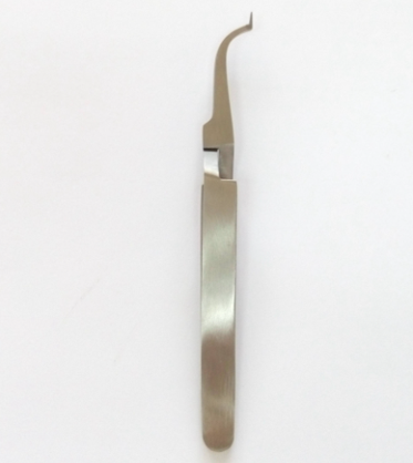 Curved tip designed for picking up R6, R7 brackets and buttons.